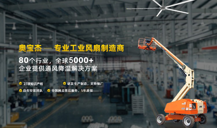 奧寶杰工業吊扇可在生產制造、倉庫、農業、商業、機場、火車站、食堂、體育館等多種環境進行安裝,適用于鋼結構、混泥土、球形網架結構、預制梁結構等建筑類型